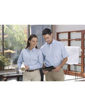 65% polyester/35% combed cotton, 4.5oz./yd2/154gsm; UV protection performance; Front and back waist dartsá; Adjustable cuffs with buttoned sleeve plackets;