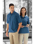100% combed cotton, 6.3oz./yd2/215gsm; North American made; Solid pique body; Left chest pocket; Matching flat knit collar and cuffs; Easy care;