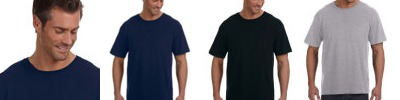 100% preshrunk cotton; Seamless double-needle stitched,1/2" rib knit collar; Sideseamed with tape neck and shoulders; Double-needle stitched sleeves & bottom hem; Sport Grey Ring Spun: 90/10 cotton/poly; Heather Sapphire, Heather Dark Chocolate: 65/35 poly/cotton; Heather Maroon, Heather Navy, Dark Heather:65/35 poly/cotton;