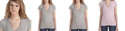 100% 30's preshrunk combed ringspun cotton; Tag-free neck label; Taped shoulder-to-shoulder; double needle stitching; Hemmed sleeves and bottom; Contemporary fit; stylish mitered V-neck; Narrower ribbed collar with coverseaming; Ash 99/1 cotton/poly; Light Steel is 90/10 cotton/poly;