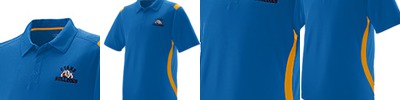 4 oz., 100% polyester tricot; snag protection; moisture-wicking performance; anti-microbial; UV protection performance; heat-sealed label; three-button placket; contrast shoulder inserts; matching flat knit collar;
