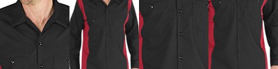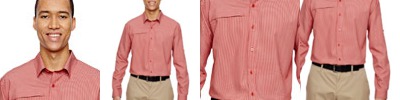4.2 oz., 70% rayon/30% polyester mini check; moisture-wicking performance; hidden button-down collar; back vent system for added breathability; right-chest pocket with reverse coil semi-autolock zipper and rubber pull tab ; durable flat felled side and underarm seams; adjustable cuffs can be worn down or rolled up;