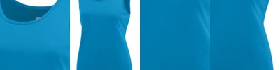 5.3 oz., 91% polyester, 9% spandex body; 4.7 oz., 91% polyester, 9% spandex pointelle mesh side panels in Sport Graphite; moisture-wicking and anti-microbial; cationic dyes to ensure superior brightness and excellent color fastness; athletic fit; sewn in shoulder tape; self fabric trim; double-needle stitching at hems;