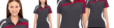 100% yarn wicking polyester pique, 5.2 oz./yd2/175gsm; Moisture wicking, antimicrobial and UV protection performance; Self fabric elongated open placket; Asymmetrical color-block styling; Self fabric collar with collar stand;