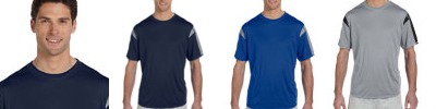 5.5 oz., 100% ringspun cotton jersey; Ribbed crew neck (97% ringspun cotton, 3% spandex); Taped shoulder-to-shoulder; Back locker patch; Double-needle hem bottom; Bleed-resistant ink is recommended for printing; Ribbed sleeve cuffs (97% ringspun cotton, 3% spandex);