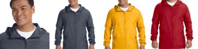 9 oz./yd² / 300 gsm, 96% polyester, 4% spandex bonded with brushed tricot with inner membrane; 3,000 mm waterproof rating; 1,000 g breathability rating; Matching chin guard; Center front revese coil zipper; Lower zippered pockets;