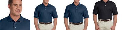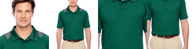 100% polyester pique, 4.3oz./yd2/145gsm; Moisture wicking, antimicrobial and UV protection performance; Matching flat knit collar; Contrast color neck tape;
