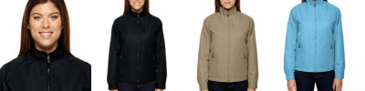 100% polyester taffeta in sleeves; 100% polyester woven twill, 4.1 oz./yd2/ 140 gsm; jacket LINING: 100% polyester mesh in body; Contrast panel colors and bold piping a; raglan sleeves; Lower zippered security pocketsá; adjustable shockcord at hem;