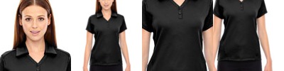 5.3 oz., 91% polyester, 9% spandex body ; 4.7 oz., 91% polyester, 9% spandex pointelle mesh back panel; moisture-wicking and anti-microbial; cationic dyes to ensure superior brightness and excellent color fastness; athletic fit; self-fabric collar; self fabric Sport Graphite inner neck tape; three-button placket; self-fabric Sport Graphite inserts at shoulders;