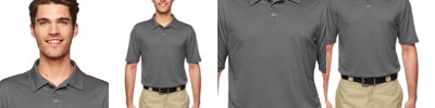 100% polyester pique, 4.1 oz./yd2/140 gsm; Moisture wicking, antimicrobial and UV protection performance; matching flat knit collar; heat seal label;