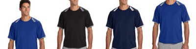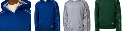 4.1 oz., 100% polyester; Dri-Power® moisture-wicking fabric; Self-fabric collar with contrast back neck tape; Two-needle hem bottom; Contrast inserts on shoulder and sleeves; Dri-Power® oval lower right front; "R" Russell logo outside back neck;